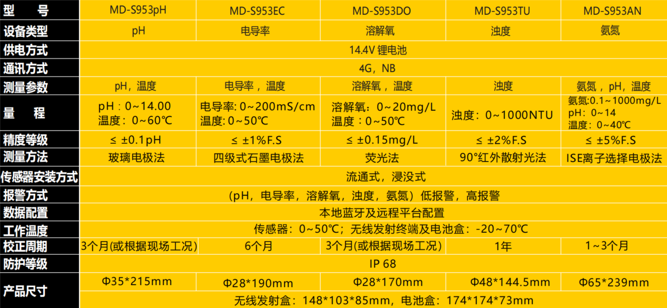 MD-S953系列無線水質(zhì)傳感器是一款將傳感器,通訊模塊,供電電源分體式設(shè)計(jì)的無線終端。