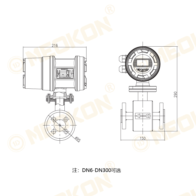 流量傳感器與智能轉(zhuǎn)換器整體地或者分離地組成一個(gè)完整的流量計(jì)。